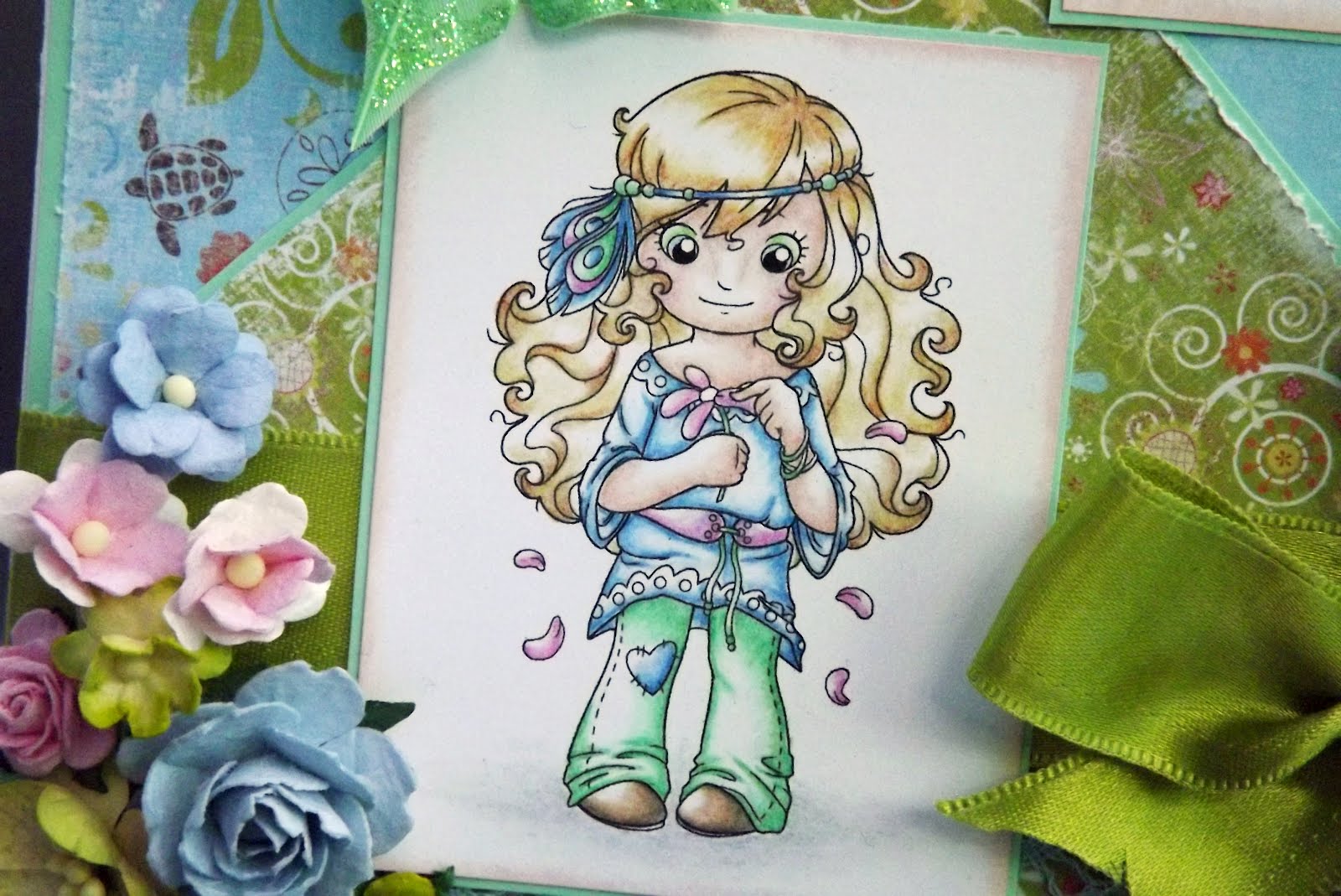 My stunning image was coloured with prisma pencils and all my edges have been distressed with vintage photo distress ink. I'm sure she will put a smile on someones face!